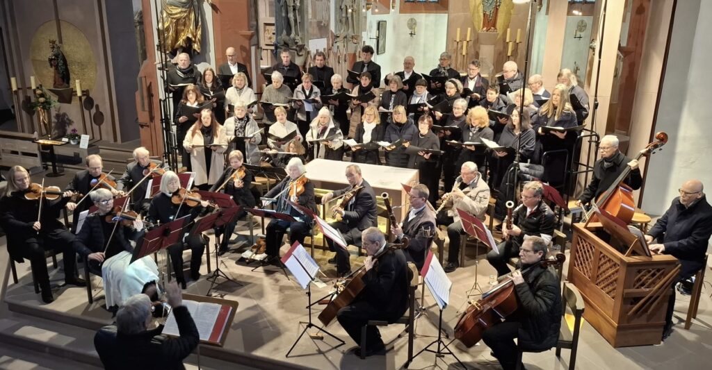 Beim gut besuchten Jahreskonzert von Chor und Orchester der Kantorei unter der Leitung von Kantor Bernhard Seelbach erklangen am Christkönigssonntag, dem 23. November 2025, die Missa in G von W. A. Mozart, KV 140, die Kantate „Alles, was ihr tut“ von D. Buxtehude, BUXWV 4, die Sinfonia in A von C. F. Abel, op. 10,6, J. S. Bachs „Jesus bleibet meine Freude“ und das „Salve Regina“ von V. Rathgeber.